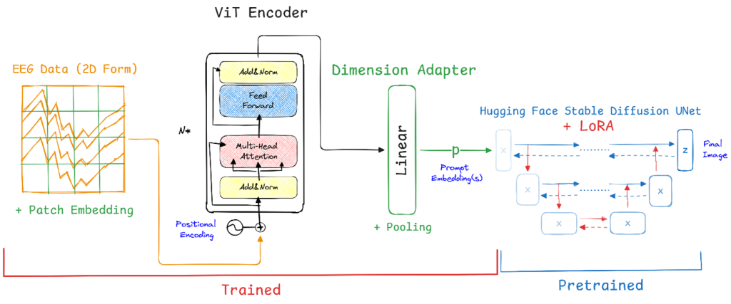 - Used an EEGVit encoder (a vision transformer) to project the EEG signal patches into contextualized token embeddings.